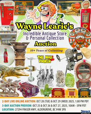 October 16, 2025 -- Wayne Learie, professional picker of high-end antiques and collectibles, announces his retirement with a 2,000 Lot Auction consisting of his personal and store treasures